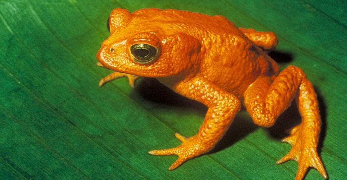 The Golden Toad of Costa Rica, recognized for its bright orange color, was last seen in 1989 in the Monteverde cloud forests and was declared extinct in 1994. Its disappearance was primarily due to chytrid fungal disease and climate change.