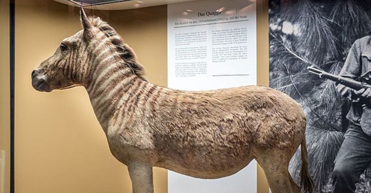 The Quagga, a subspecies of Plains Zebra native to South Africa, went extinct in the late 19th century due to excessive hunting. These unique animals looked like zebras and horse hybrids, with stripes only on their front half.