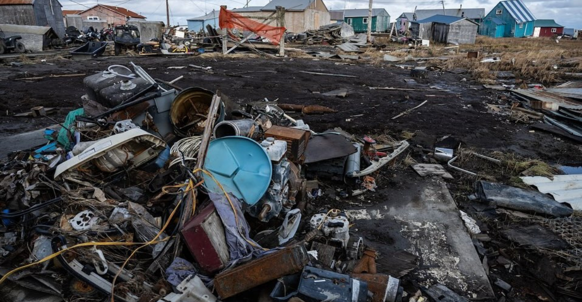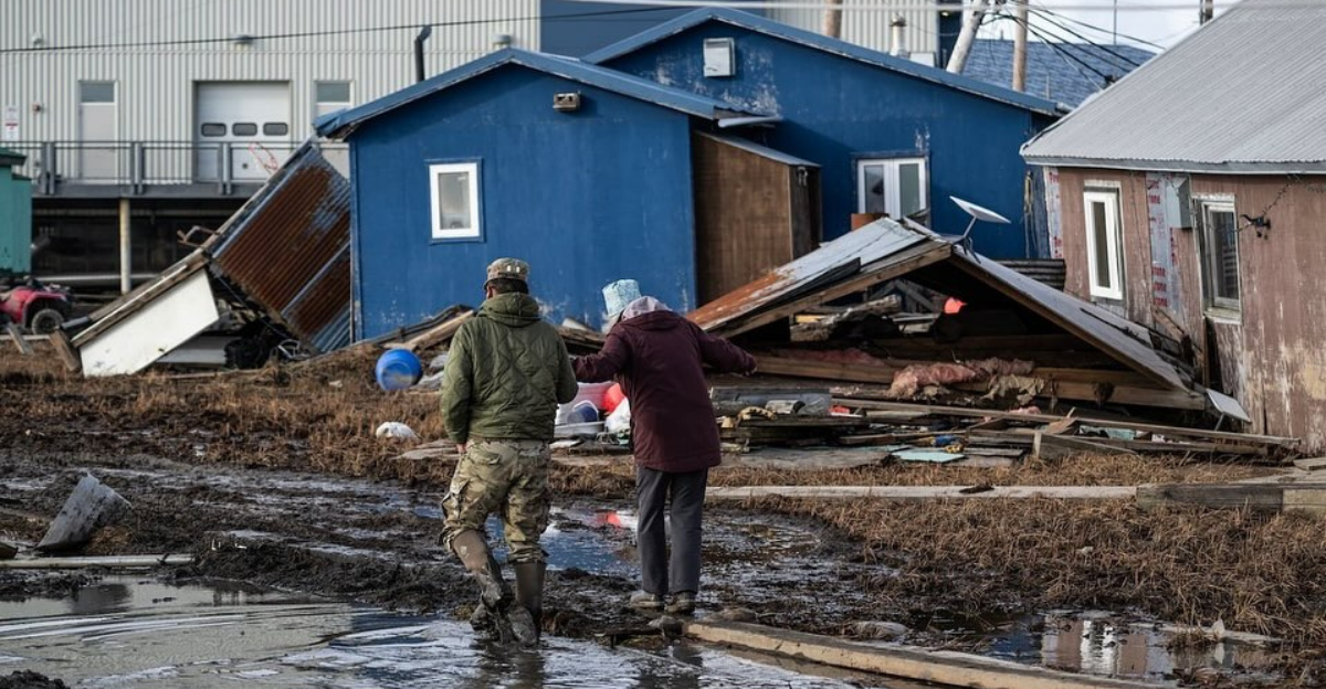 Typhoon Halong’s remnants made landfall in western Alaska in October 2025, unleashing destructive storm surge and winds of up to 100 mph. Over 2,000 Alaska Native residents were forced to relocate as a result, with over 90% of homes in villages like Kipnuk and Kwigillingok destroyed.