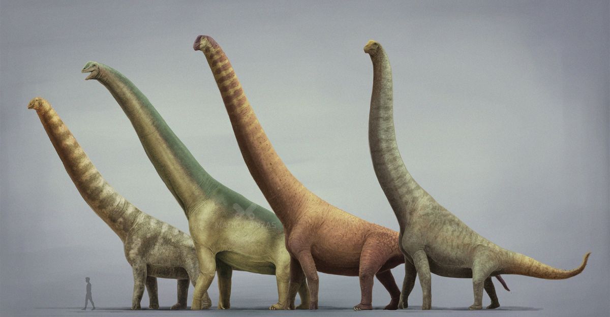 Sauropods dominated Jurassic terrestrial ecosystems as gigantic, long-necked herbivores that achieved unmatched sizes among land animals.