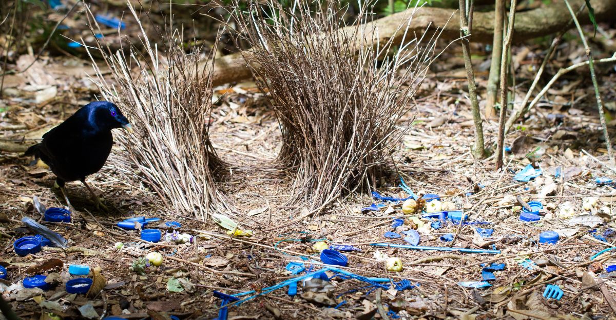 Every item is meticulously arranged by color and symmetry to appeal visually to females. These birds are true aesthetes, blending architecture, design, and courtship in one extraordinary creation.