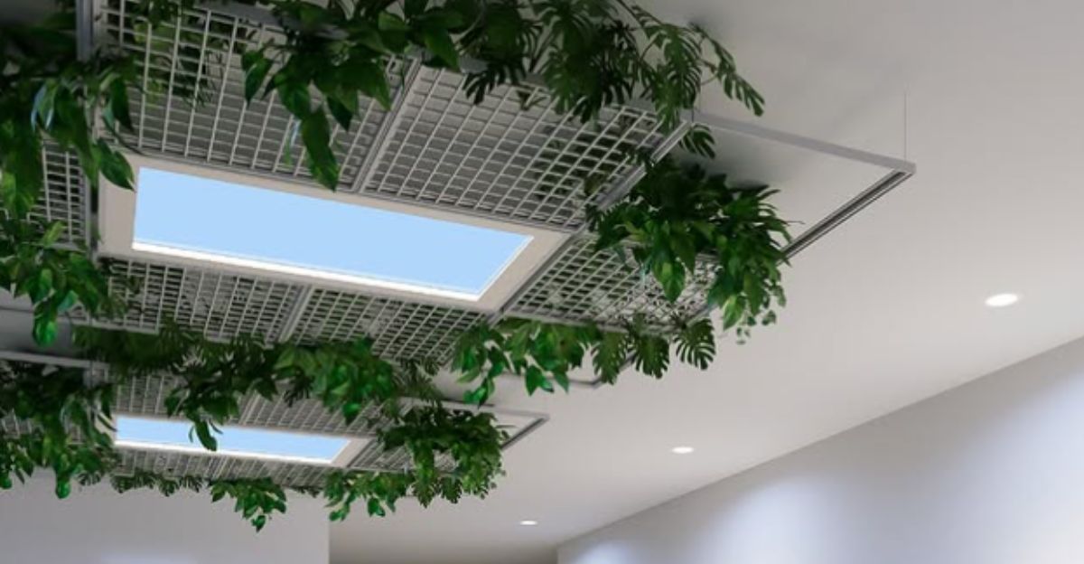CoeLux systems use advanced optics to create the visual illusion of natural skylight, simulating depth and sky color without emitting UV radiation.