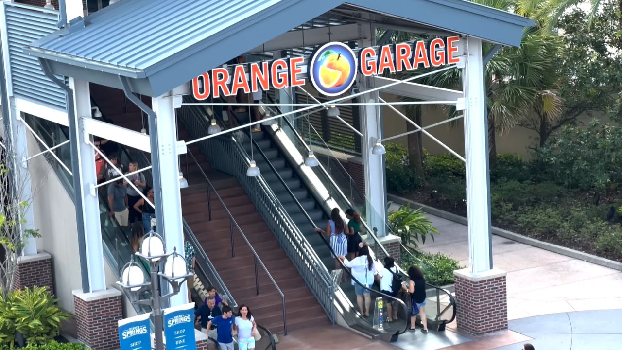 On a Friday night just before 9 p.m., sheriff’s deputies moved through the Orange Garage at Disney Springs as crowds were still filing out, their patrol lights reflecting off parked cars.