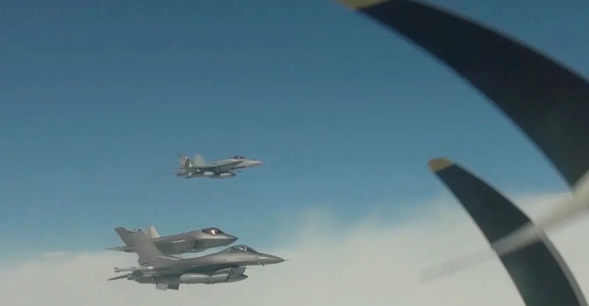 As the joint patrol entered the Alaska Air Defense Identification Zone, U.S. Northern Command quickly dispatched F-16 and F-35 fighter jets to intercept and monitor the formation. At the same time, Canadian CF-18s joined the operation to ensure coordinated defense coverage. The intercepts were conducted in international airspace, with pilots maintaining a safe distance yet remaining close enough to confirm the identities and intentions of the bombers.