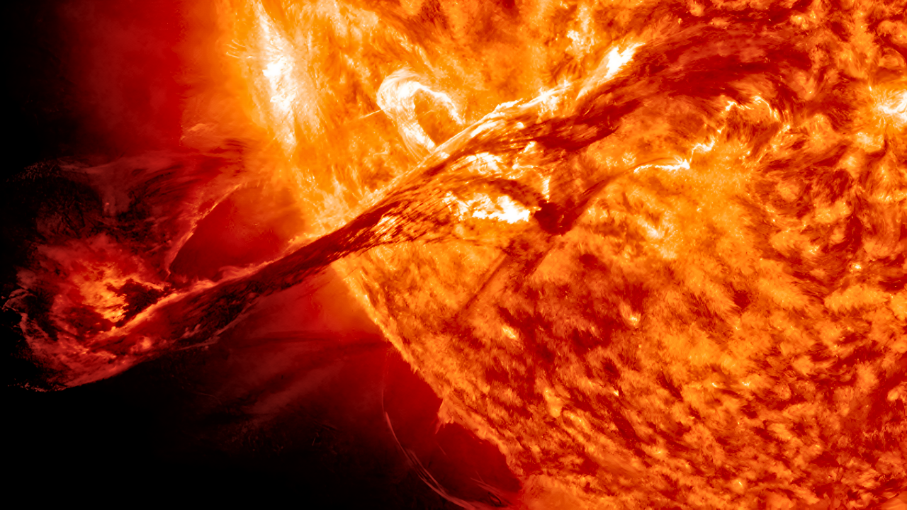 A coronal mass ejection occurs when magnetic fields in the Sun’s corona suddenly restructure and expel enormous quantities of charged particles into space. These ejections can carry billions of tons of plasma and embedded magnetic fields. When they collide with Earth’s magnetic shield, they can trigger geomagnetic storms that disturb the upper atmosphere and induce electric currents at the planet’s surface.