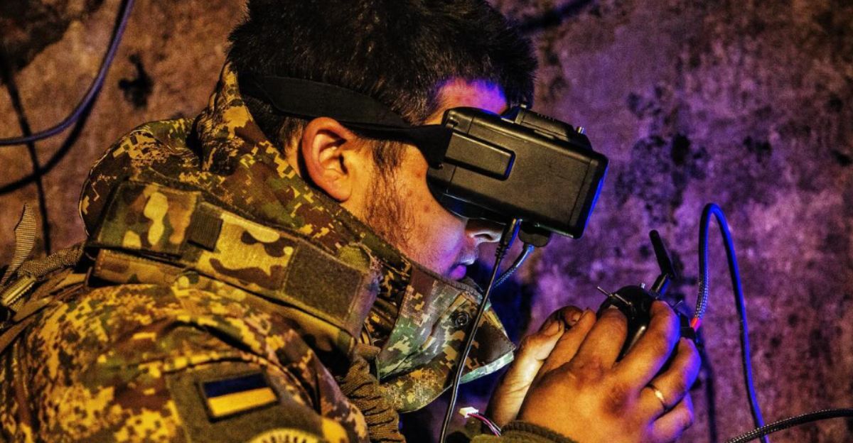 Voyazh’s mission involved flying several kilometers into Russian-controlled territory while relying on limited visual data from a first-person-view (FPV) drone camera. FPV drones are small, manually controlled aircraft that send live video feeds to the pilot, allowing precise navigation and targeting. Despite obstacles such as poor visibility and strong electronic interference, the pilot identified suspicious military activity near a hidden site and decided to engage. The strike hit the camouflaged PPRU-1, completely destroying it.