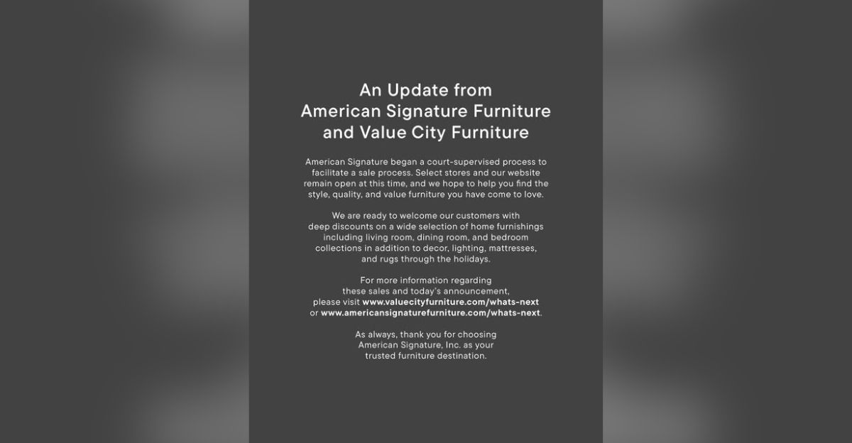 Furniture Today. (2025, November 22). American Signature files for Chapter 11; issues WARN notice